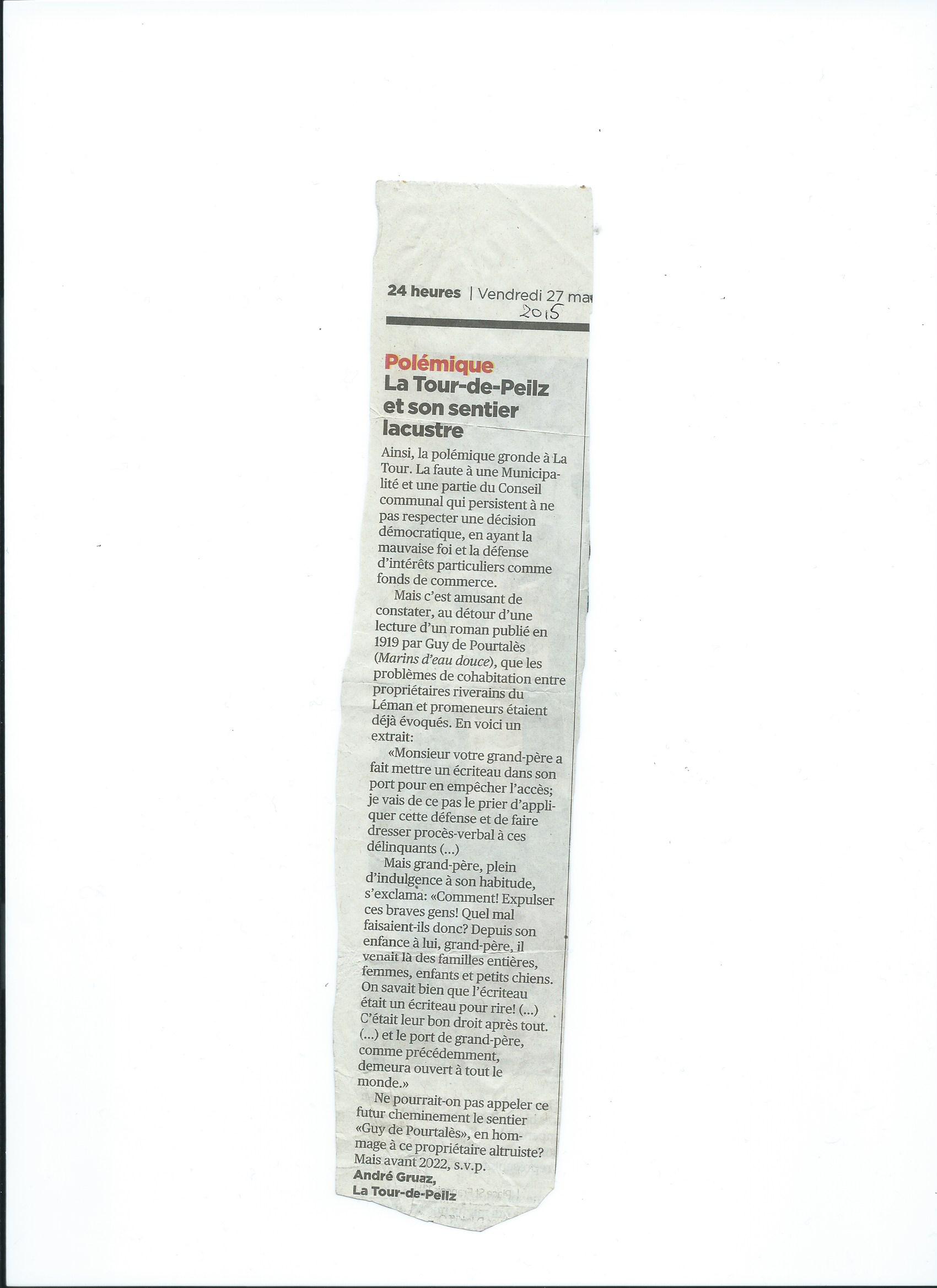 25.05.15 – Le Temps – Courrier des lecteurs – La Tour-de-Peilz et son sentier lacustre